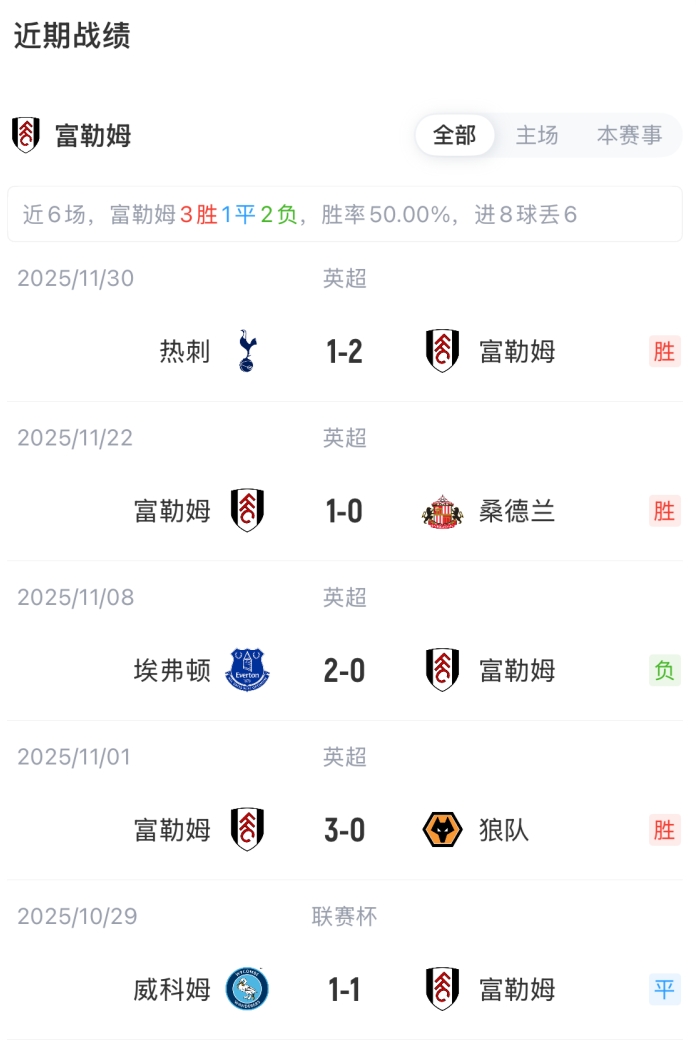 富勒姆首发:1-莱诺、2-泰特、5-安诺森、3-巴锡、30-塞塞尼翁、20-卢基奇、16-博格、8-哈里·威尔逊、32-史小姐·罗、17-伊沃比、7-希门尼斯