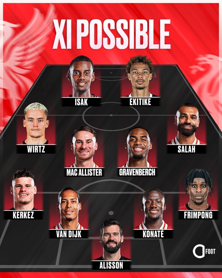 恐怖!外媒瞻望利物浦首发:伊萨克+埃基蒂克 维尔茨、萨拉赫在列