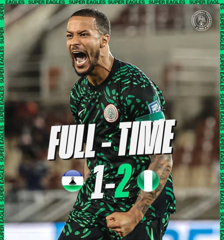 莱索托在第83分钟由赫洛弗-卡拉克打进1球,最终尼日利亚2-1打败莱索托。
