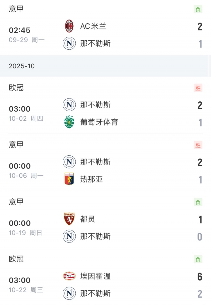 10月22日讯 欧冠联赛阶段第3轮那不勒斯客场2-6惨败埃因霍温,当今欧冠3轮2负暂排第22。