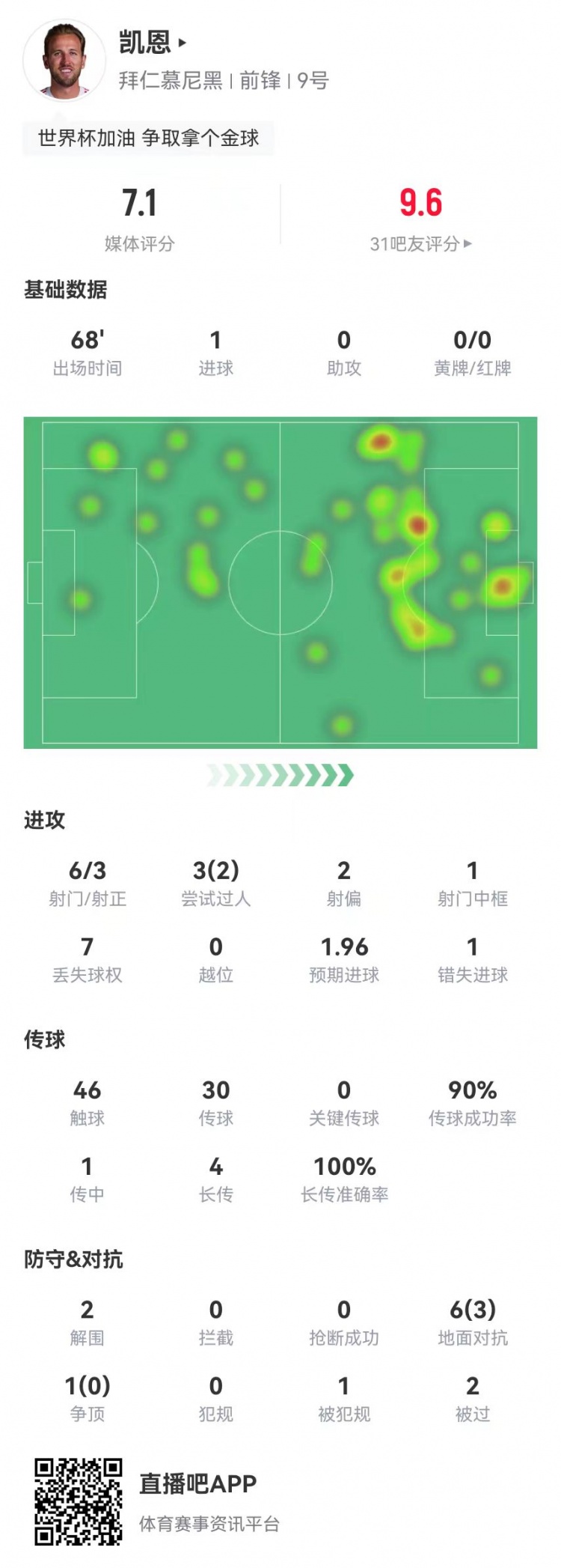 10月23日讯 拜仁在本轮欧冠3-0特出布鲁日,凯恩本场数据如下: