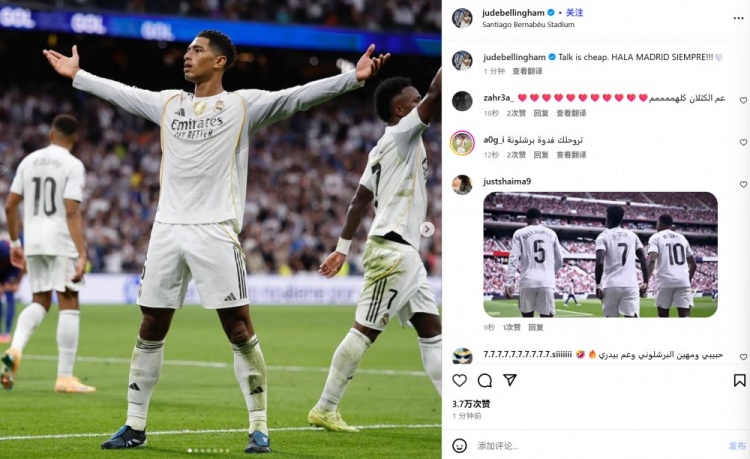 亚马尔的言论被皇马球员视为“讲和”,更衣室内不会漠视这少许,以贝林厄姆为例,他在赛后晒照并发文“畅谈是低价的,永远撑合手皇马”。