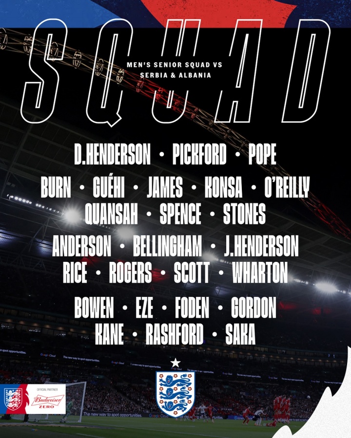 英格兰队公布最新名单备战下周的天下杯外围赛,他们是欧洲区惟一还是提前出线的球队,6战全胜一球不丢。曼城的少壮奥赖利和伯恩茅斯的后腰斯科特初次入选。三狮军团东谈主员储备最丰富的是前腰位置,从头入选的贝林厄姆与福登将与罗杰斯争夺首发契机,相似擅长踢这个位置的帕尔默当今在养伤。