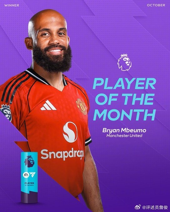 詹俊在社媒写谈:姆伯莫当选为英超10月份最好球员。曼联最近的四轮不败,在首要端他是主要元勋。