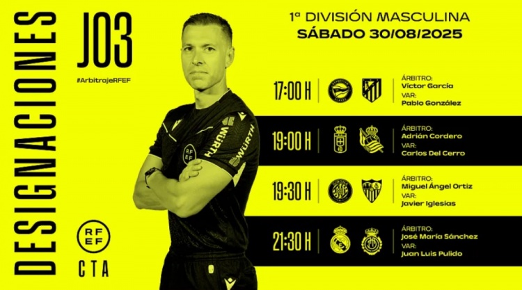 8月30日讯 西甲官方公布了当地本事周六进行的4场西甲比赛的裁判安排,其中何塞-马里亚-桑切斯将国法皇马VS马洛卡。