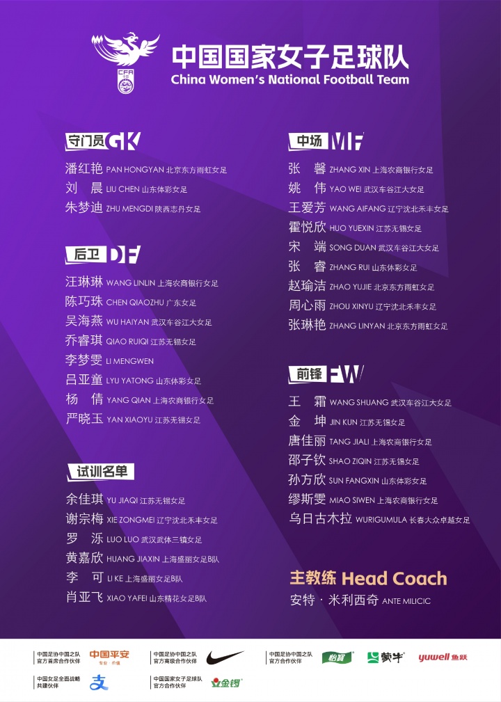 08月25日讯 中国女足新一期集训大名单,王霜、李梦雯、张琳艳、吴海燕、唐尤物在列。
