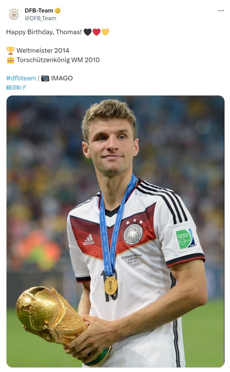9月13日讯 今天是托马斯-穆勒的36岁诞辰,德国队官方为他奉上道喜。
