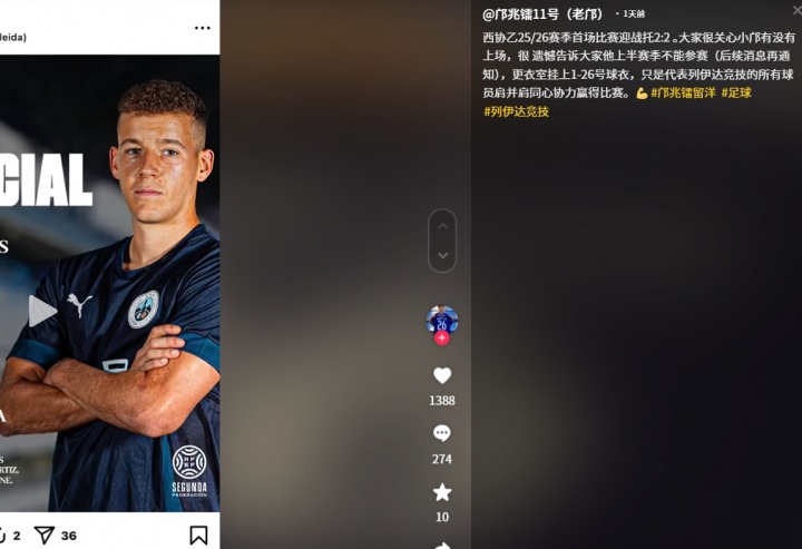 邝兆镭父亲:“西协乙25/26赛季首场比赛迎战托2:2。民众很温顺小邝有莫得上场,很缺憾告诉民众他上半赛季不成参赛(后续音信再示知),更衣室挂上1-26号球衣,仅仅代表列伊达竞技的系数球员肩并肩齐心合力赢得比赛。💪”