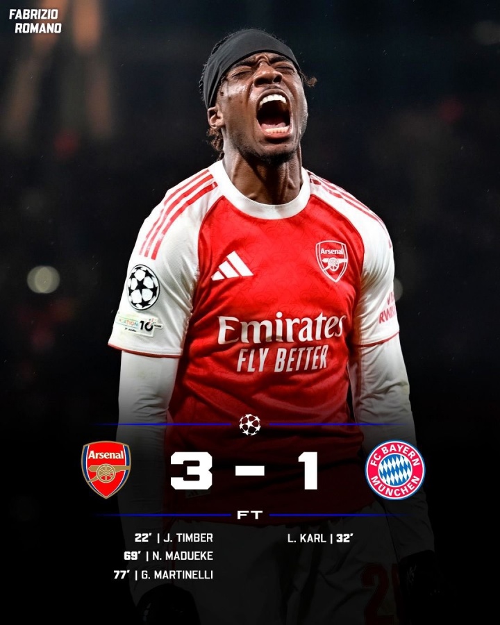 与此同期,阿森纳也亲手驱逐了拜仁的欧冠全胜记载,拜仁在此之前是4战全胜。
