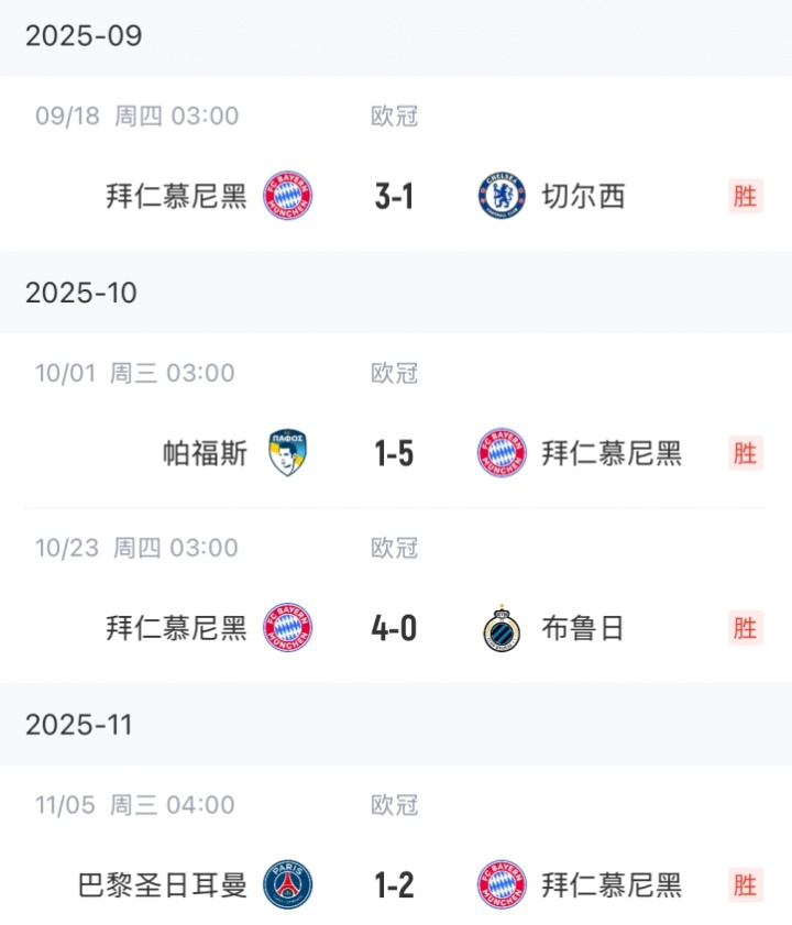 同期拜仁本赛季的各赛事不败也被驱逐,此前各赛事18场拜仁17胜1平。