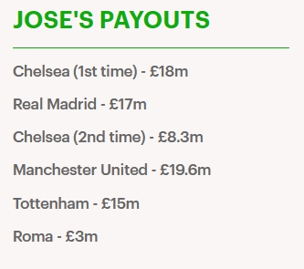 加上此前被切尔西、皇马、曼联、热刺和罗马除名的解约金,穆帅生存所获解约金已累计精辟9400万镑,接近1亿镑。不外,之前有媒体报说念过,穆帅曾烧毁其中一部分的解约金。